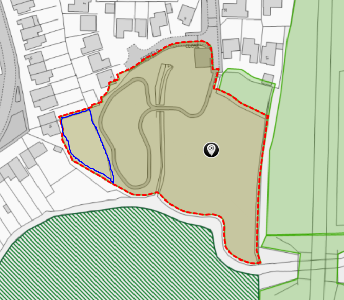 Site boundary of POS adjacent to watercourse in Lutterworth needs to be amended to exclude the garden of 25 RIverside Road. Marked in blue on the attached clip