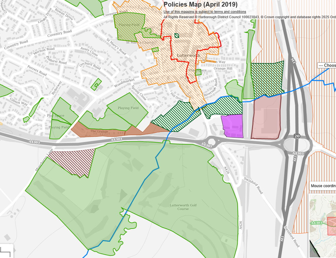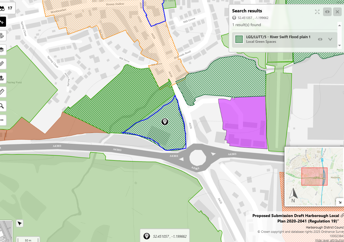 Site boundary of Local Green Space at Lutterworth (LGS/Lutt/5 - River Swift Flood Plan ) needs to be amended to take account of the retail outlet on site. (section to be removed highlighted in blue on screen capture). The previous iteration of the Local Plan (2019) was correct. The Local Plan 2019 and the proposed submission version local plan screen clips are attached